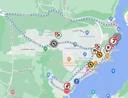 Location: Passage Street, North Street, Fore Street, Webb Street, St Fimbarrus Road, Cobbs Well Hill, Esplanade, Lostwithiel Street, Fowey