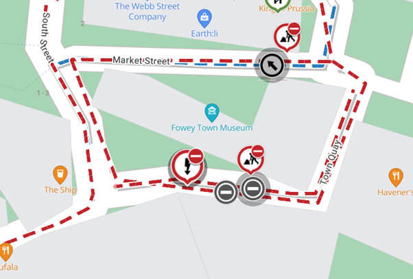Location: Passage Street, North Street, Fore Street, Webb Street, St Fimbarrus Road, Cobbs Well Hill, Esplanade, Lostwithiel Street, Fowey